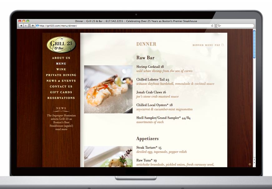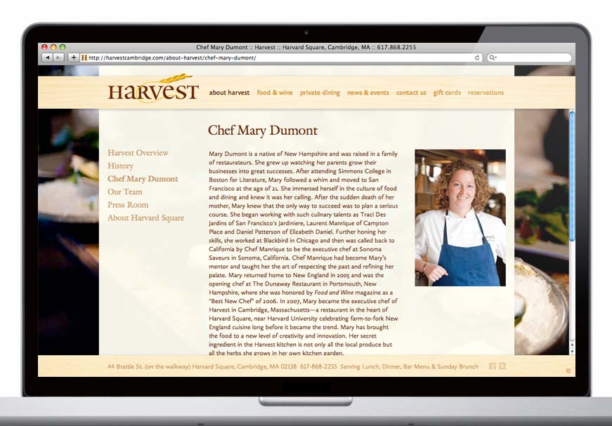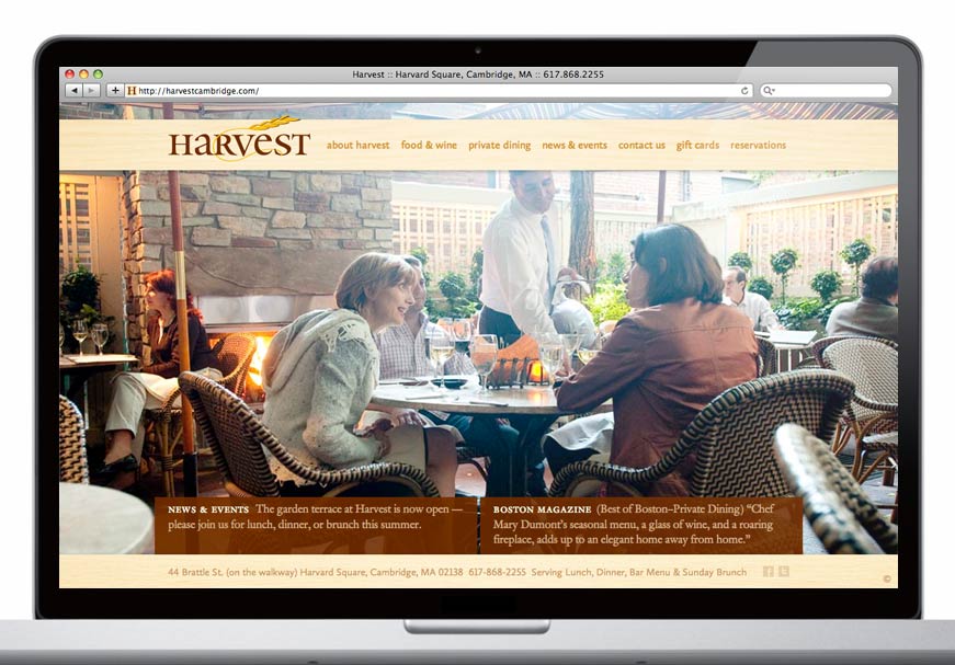 Following the success of Post 390, Visual Dialogue recently launched two new sites for the Himmel Hospitality Group: Grill 23 in the Back Bay and Harvest in Cambridge. The redesigned sites are now infused with a sense of atmosphere, energy, people and, of course, the food which makes each restaurant special. In addition to developing the new CMS driven sites, we also created intregrated online marketing and advertising campaigns. Looking for outdoor dining in Harvard Square with one of the best seasonal menus around? Or a special night out in one of the grandest settings in Boston? Then we’ve got a table (and a website) for you.