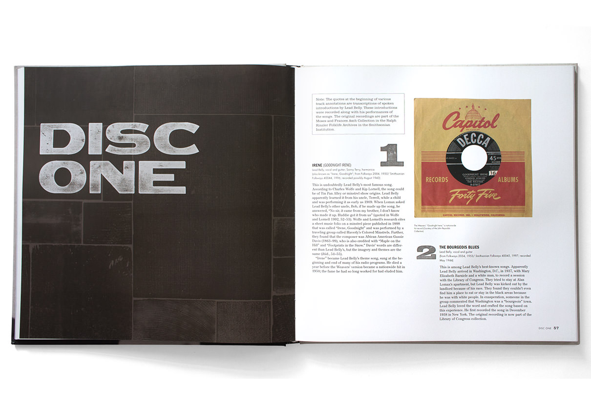 When artists ranging from Bob Dylan to Kurt Cobain to Jack White cover your songs, it’s clear that your influence spans music genres and generations. Lead Belly: The Smithsonian Folkways Collection, the first career-spanning boxed set dedicated to the American music legend was released today. The compilation, a follow-up to our 2012 Grammy-winning Woody at 100 boxed set, includes 108 songs on five discs in a 140-page book filled with photos, original letters, newspaper clips, and archival artwork. The collection, written and co-produced by Jeff Place and Robert Santelli, is available now on the Smithsonian Folkways website.