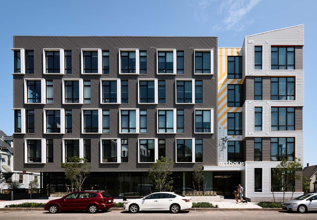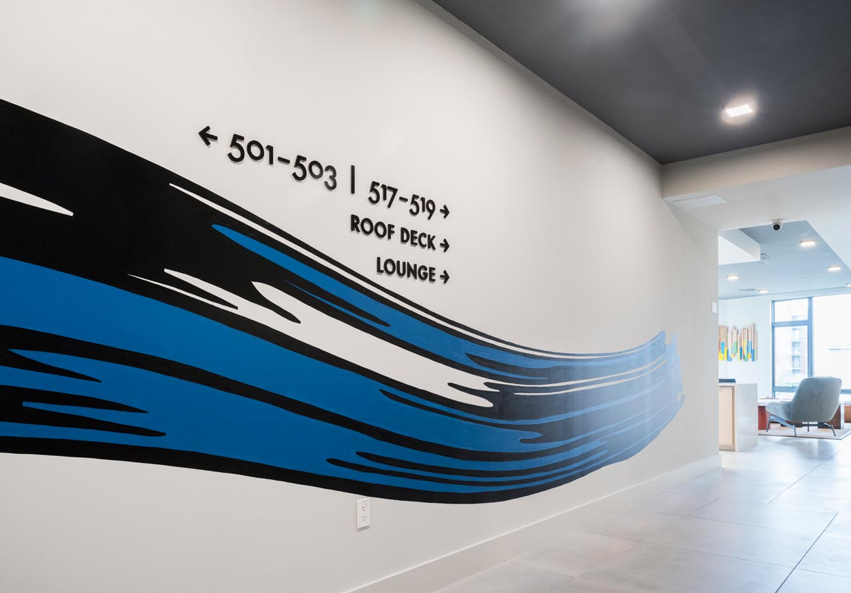 If you’ve been through Allston recently, you may have noticed a new apartment building with a 4-story mural of an artist… painting a mural. Enter Arthaus and you’re greeted with a large-scale, self-portrait of the neighborhood’s namesake, 19th century painter Washington Allston. Look in every direction and see how Visual Dialogue took this blank canvas and turned it into a work of art.