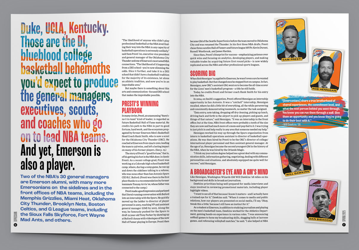 The Celtics may be out (get well soon, JT), but Emerson is still in the NBA Playoffs. The latest sports-themed issue of Expression charts the unexpected connection between this little local college and the biggest (well, tallest) professional sports league.