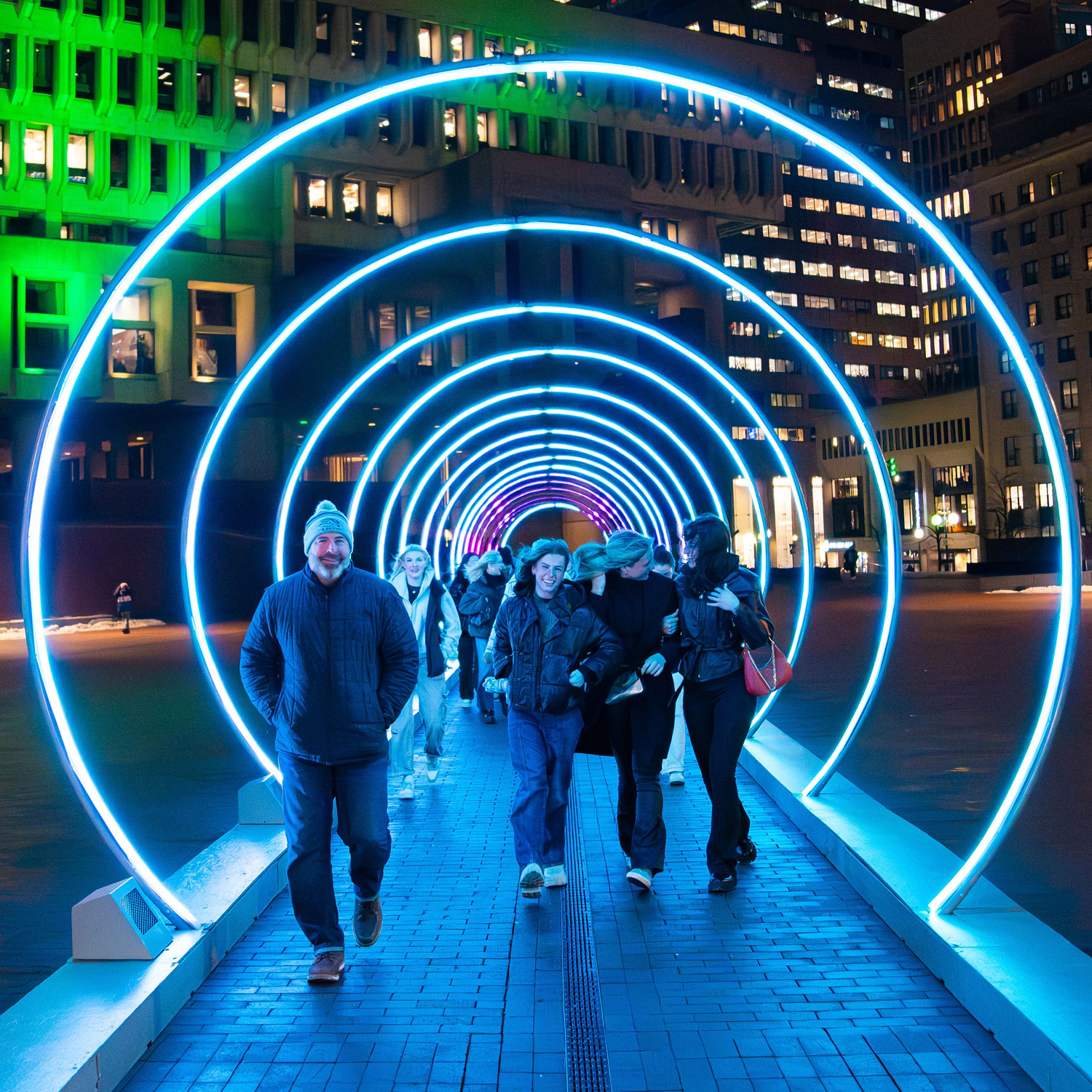 For two years running, Winteractive has activated downtown Boston with fun and engaging artworks that range from giant clown heads, a car crushed by a mysterious UFO, oversized pink characters, a 55-foot whale, interactive installations that light up when you dance, and more.